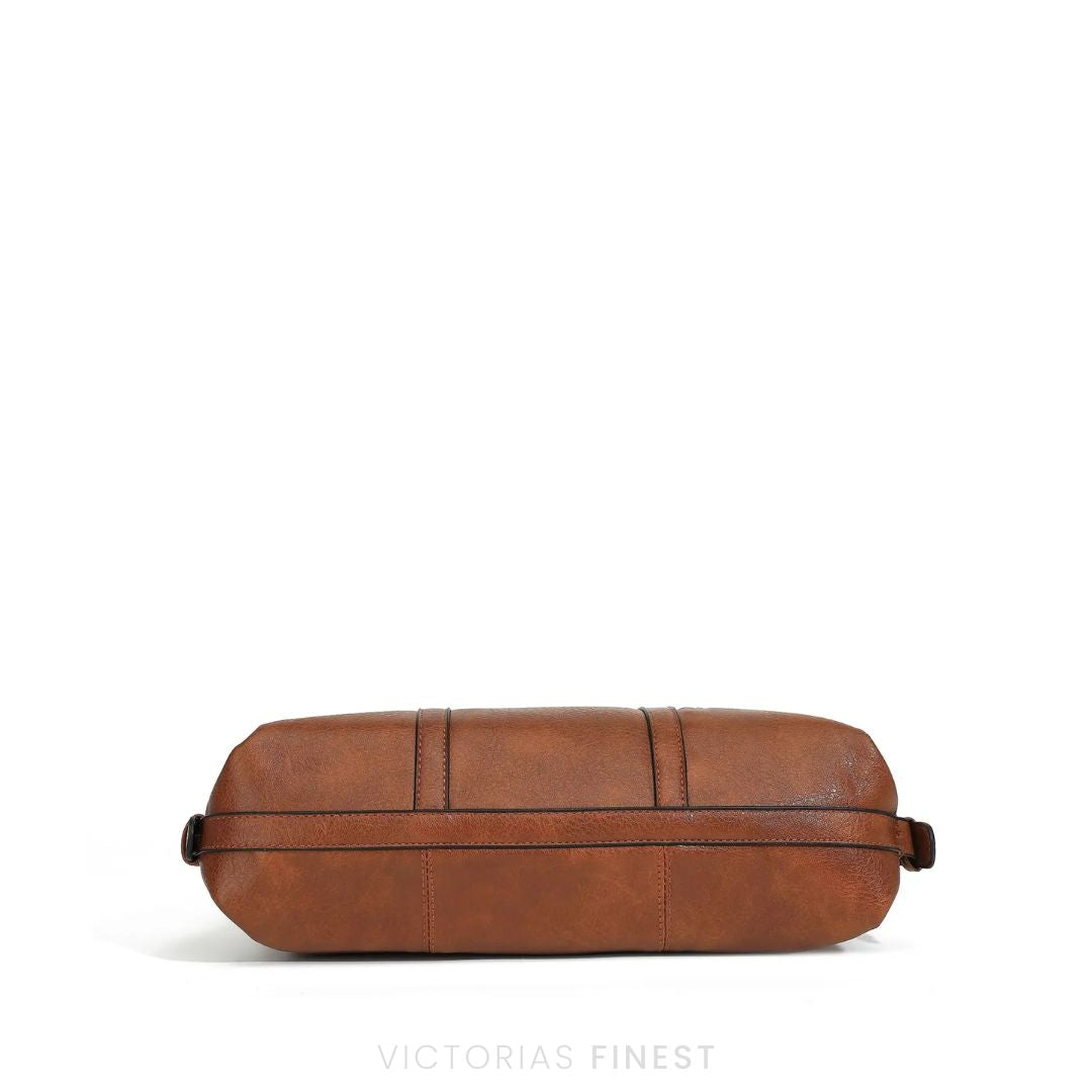 • Dual top handles and a detachable crossbody strap for versatile wear
